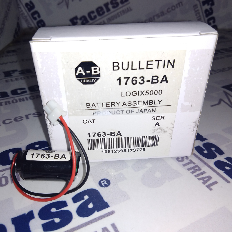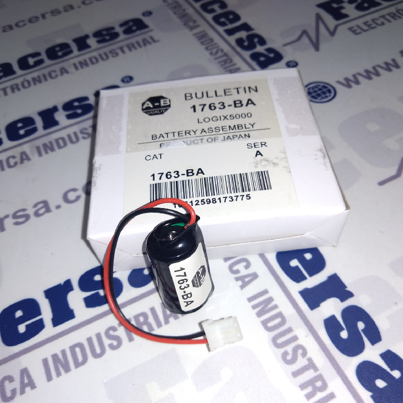 Batería 3V, PLC, con conector blanco, para controlador MicroLogix 1100, marca Allen Bradley.