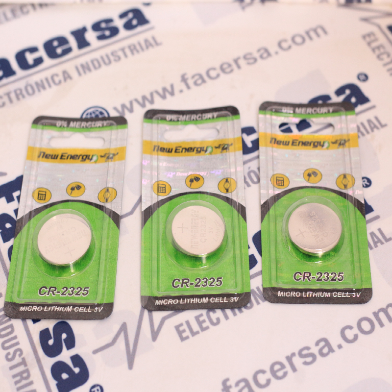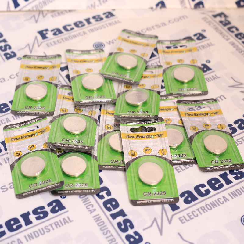 Pila botón de litio CR2325 útil en juguetes, llaveros, calculadoras, mandos a distancia sin llave y otros dispositivos electrónicos diversos.